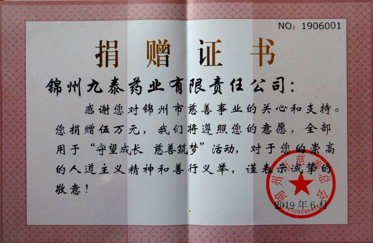 錦州市慈善總會(huì)授予公司“守望成長(zhǎng),慈善筑夢(mèng)”活動(dòng)優(yōu)秀慈善贊助單位。